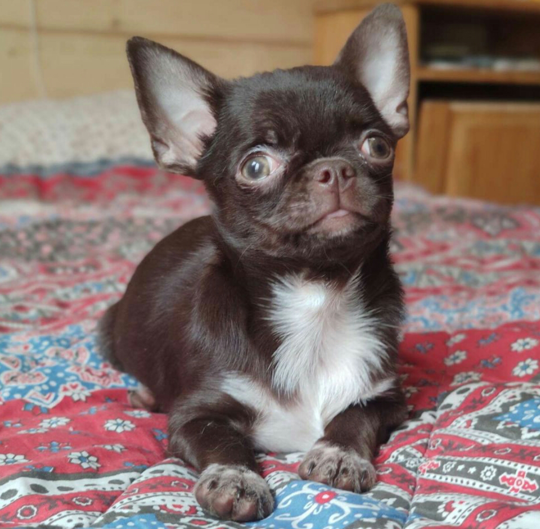 Озорная, игривая, очень непосредственная и ласковая малышка.Закурношенная, плотненькая, на невысоких ножках. В отличном современном типаже. Документы РКФ, клеймо, ветпаспорт