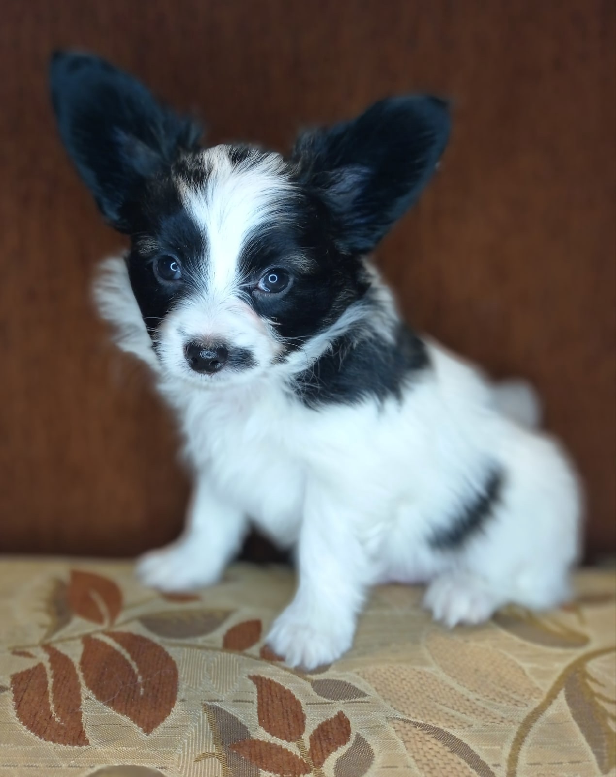 Кобель бело-чёрный Милтон флай эбав ол Джерманотта Роялс / Milton fly above all DZHERMANOTTA ROYALS Клеймо есть, сделана первая вакцинация. Зубы норма, семенники норма. Пригоден для выставочной и племенной карьеры. Щенок очень ласковый, энергичный, как и все папийоны, любознательный, любит ручки и общение с человеком. Родители имеют интересную и титулованную со всех сторон родословную Общие линии мамы и папы известных питомников Швеции, Германии, Японии, Америки, Люксембурга.